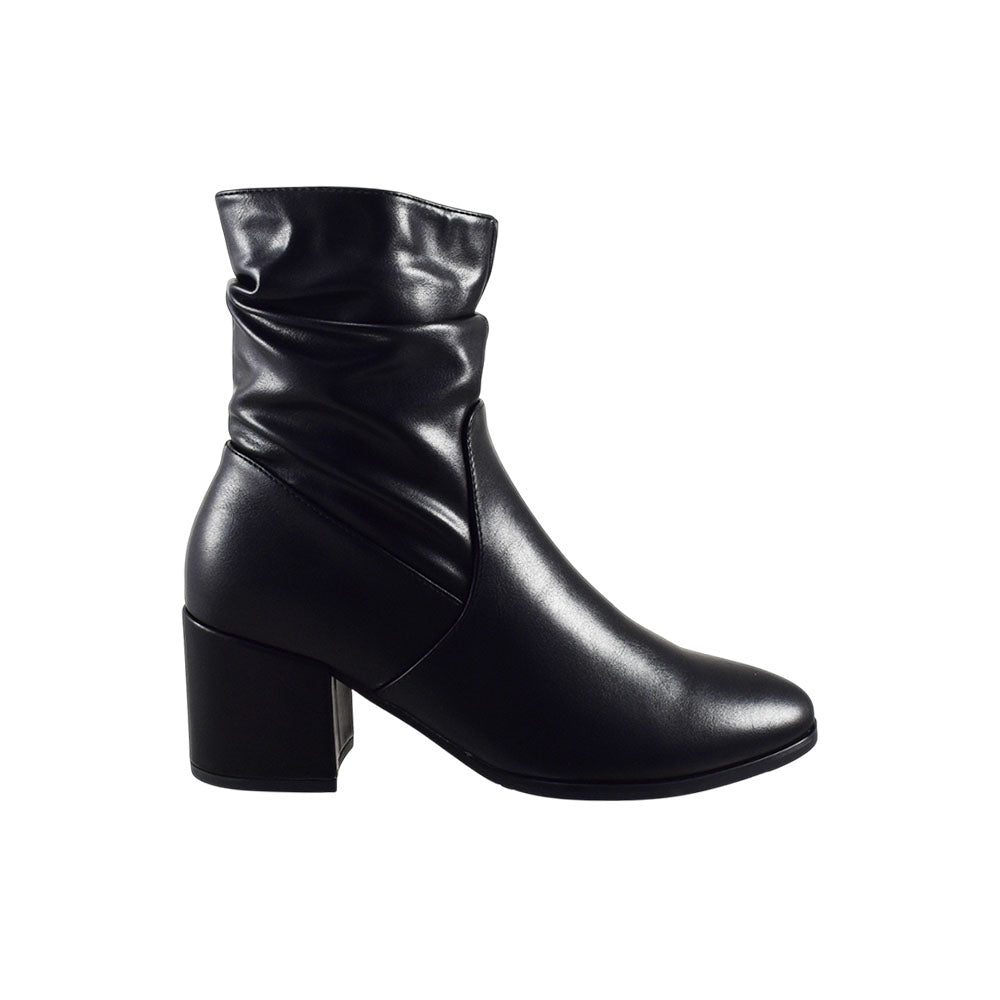 Botines casuales de tacón cuadrado, corrugadas color negro.