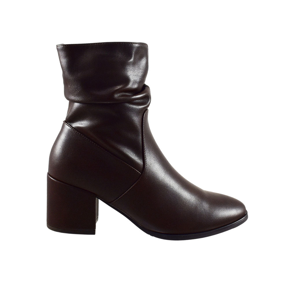 Botines casuales de tacón cuadrado, corrugadas color café.