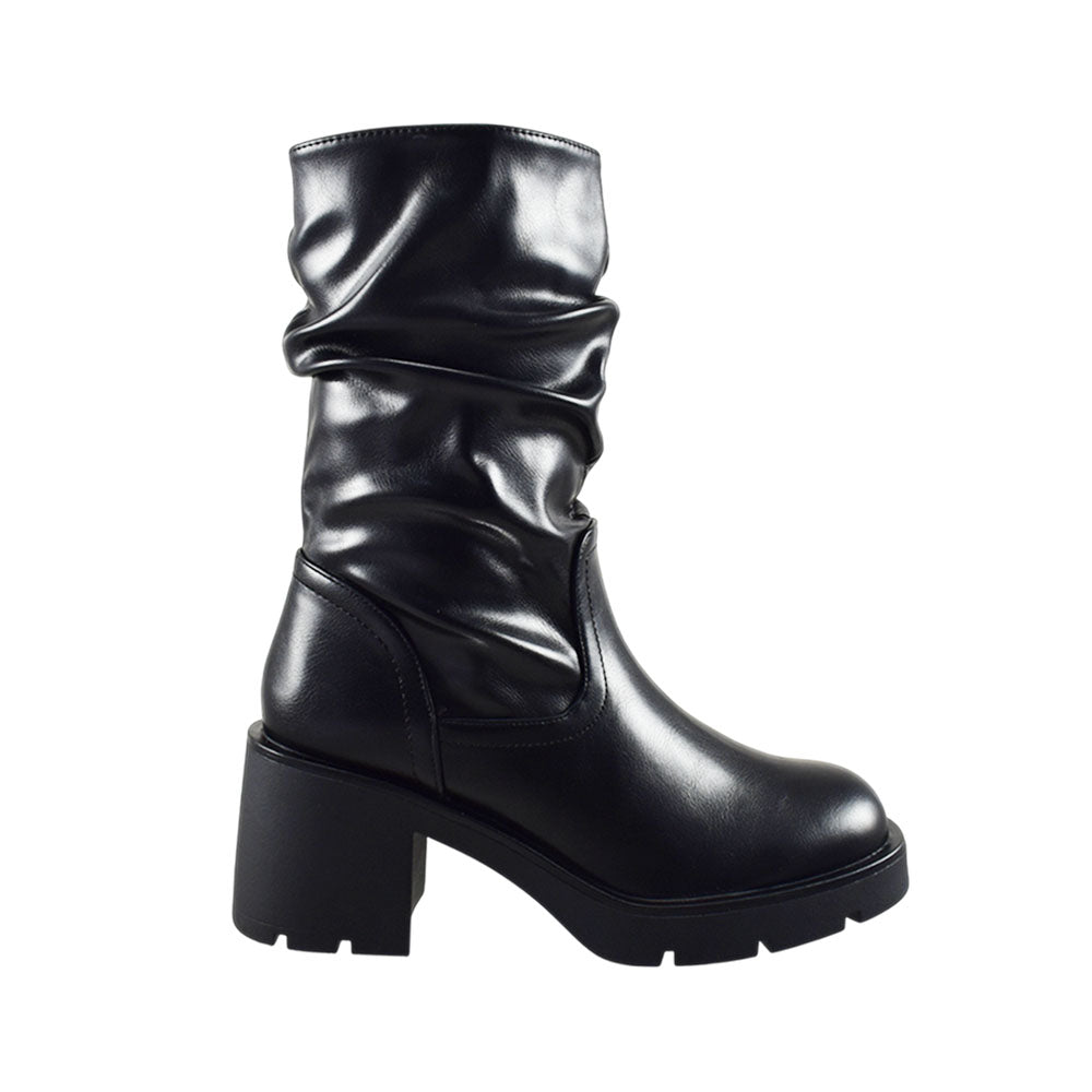 Botas de tacón cuadrado, suela trak, corrugadas color negro.